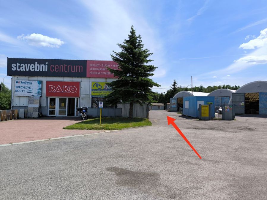 Sklad se nachází v plachtové hale v dolní části areálu.
